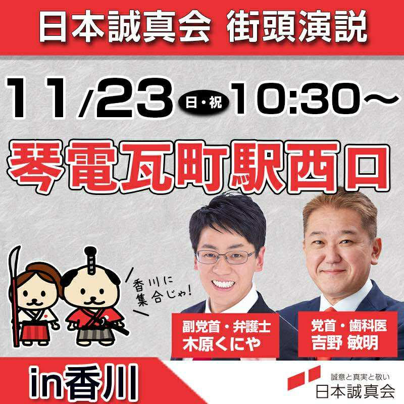 11月23日(日・祝)に香川にて街頭演説、講演会を行います。