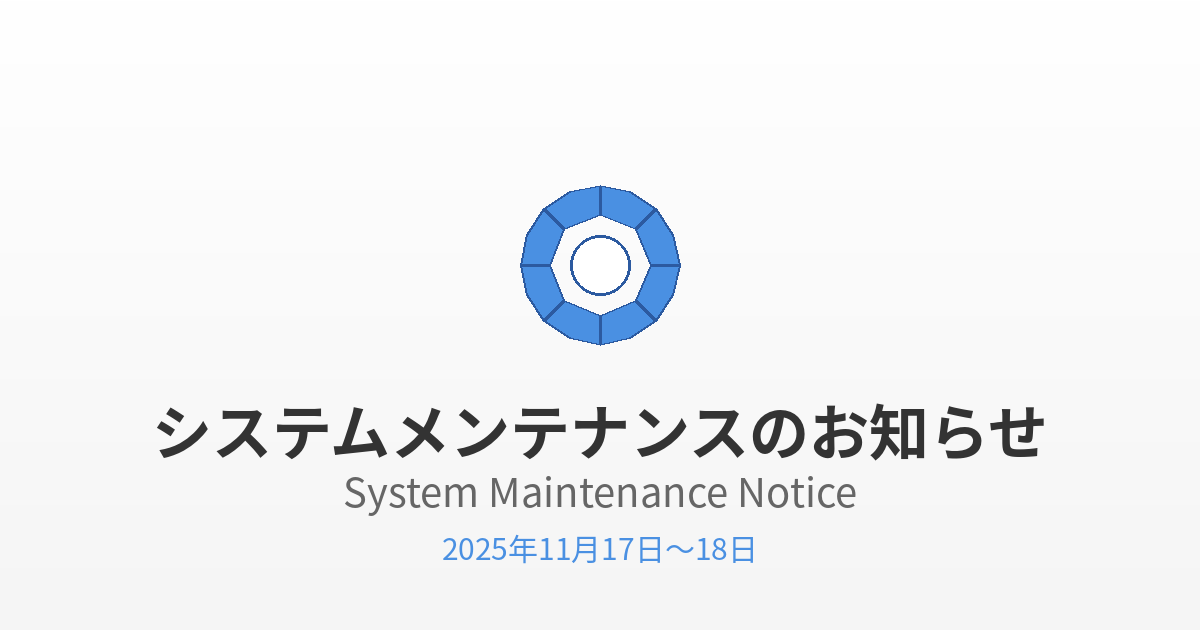 メンテナンス期間を避けて、11月16日(日)以前、または11月19日(水)以降にお手続きをお願いいたします。